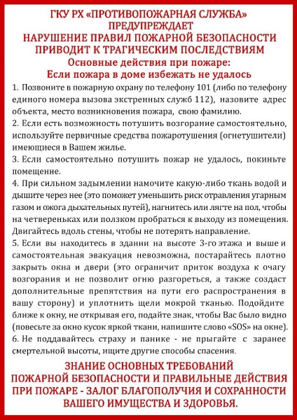 Противопожарная служба предупреждает